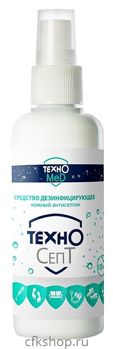 Кожный антисептик ТехноМед ТехноСепт, спрей, 100 мл используется в лечебно-профилактических учреждениях любого профиля, в детских дошкольных и школьных учреждениях, на предприятиях общественного питания, в учреждениях социального обеспечения и в быту для антисептической и санитарной обработки кожных покровов, а также для очистки и экспресс-дезинфекции поверхностей приборов и аппаратов, телефонов, комплектующих устройств компьютера, датчиков диагностического оборудования, предметов обстановки и ухода за больными. Средство поставляется во флаконе со спреем-дозатором.