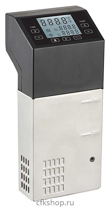 Погружной аппарат Sous Vide EKSI EV-01 используется в частных домах и квартирах для приготовления пищи в герметичных пакетах в горячей воде при невысоких температурах, что позволяет сохранить в продуктах все питательные вещества, витамины и минералы и обеспечить насыщенный вкус мяса и овощей. Модель оснащена цифровой панелью управления с ЖК-дисплеем, терморегулятором, таймером на 24 часа и сигналом оповещения о низком уровне воды. Корпус выполнен из нержавеющей стали.