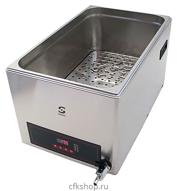 Аппарат Sous Vide Sammic SVC-28 используется на предприятиях общественного питания и торговли для приготовления блюд по технологии Sous Vide. Модель оснащена панелью управления с цифровым дисплеем, сливным краном, крышкой, съемной перфорированной полкой и ручками для переноски. Корпус, крышка и полка выполнены из нержавеющей стали.