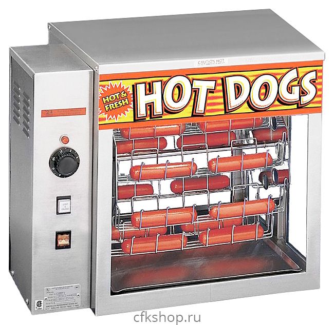 Аппарат для хот-догов APW Wyott DR-1A предназначен для поджаривания и поддержания в теплом виде сосисок для приготовления хот-догов в заведениях быстрого питания и уличной торговли. Модель оснащена панелью управления с регулируемым термостатом, кнопками включения и остановки вращения вертела и съемными держателями сосисок. Корпус выполнен из нержавеющей стали, стенки - из закаленного стекла.