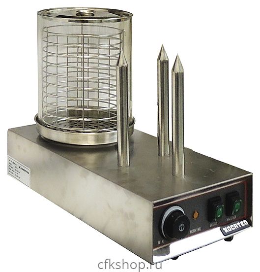 - В стеклянной колбе 2-х секционная корзина для 20 сосисок, разогреваемых водяным паром