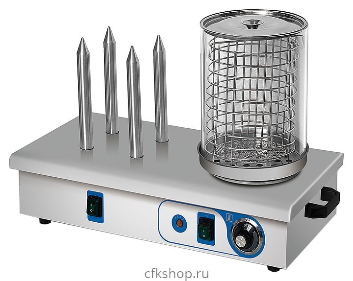 Аппарат для хот-догов Rosso HHD-04 используется на предприятиях общественного питания и торговли для приготовления сосисок на пару и поддержания оптимальной температуры уже обжаренных сосисок и булочек. Модель оснащена терморегулятором, ёмкостью для воды (паровой баней) и раздельным нагревом колбы и штырей для булочек. Материал корпуса и штырей нержавеющая сталь, материал колбы стекло.