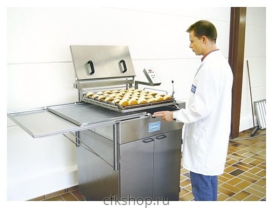 - Загрузка с помощью опрокидывающихся противней, используемых для расстойки тестовых заготовок