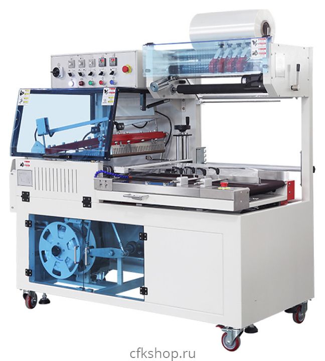 Автоматический аппарат Hualian BSF-5640LG-E используется на производственных площадках, предприятиях пищевой промышленности, общественного питания и торговли для упаковки в пленку продуктов питания, медицинских препаратов, металлоизделий, книг, косметики и другой продукции. Модель оснащена горизонтальной конвейерной лентой, укороченной частью для вытягивания пленки, запаечной рамкой с термоножом L-образной формы и электромеханической панелью управления. Корпус выполнен из металла с антикоррозийным покрытием, термонож – из алюминиевого сплава с антипригарным тефлоновым покрытием Dupont, большинство деталей – из нержавеющей стали марки SUS304.