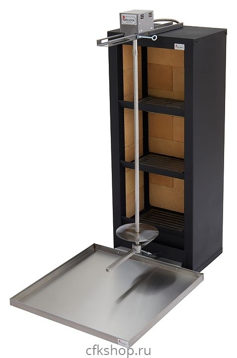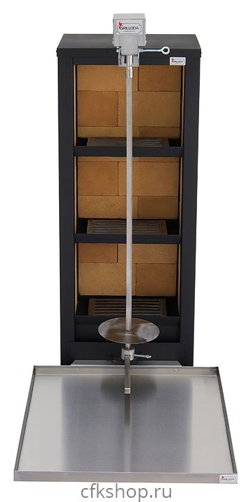Универсальный вертикальный угольный аппарат GRILLODA ШУМ-4 предназначен для приготовления шаурмы и шашлыка с использованием углей на предприятиях общественного питания и торговли. Корпус выполнен из жаропрочной антикоррозийной стали, внутренняя отделка - из огнеупорного шамотного кирпича, шампур и поднос - из нержавеющей стали.