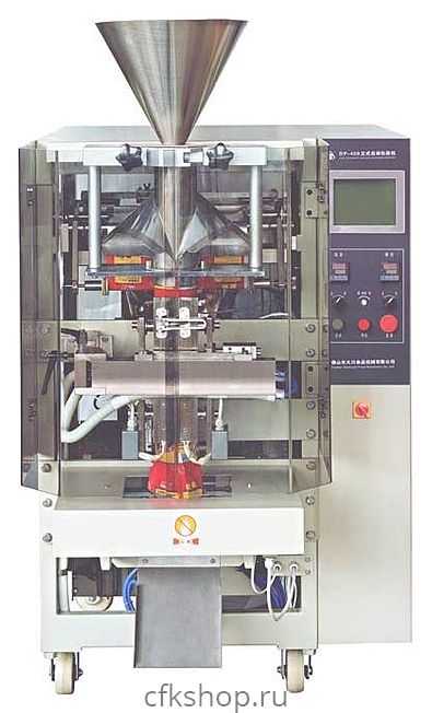 Вертикальный упаковочный автомат МАГИКОН DP-420 используется на производственных площадках, предприятиях пищевой промышленности, общественного питания и торговли для формирования трехшовной упаковки для сыпучих, порошкообразных, гранулированных, пылящих и слеживающихся товаров в любые термо-свариваемые пленки с печатью или в рулонах. Модель оснащена электронным датчиком фотометки и PLC-панелью управления.