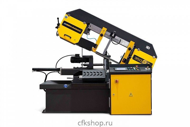 Двухколонный автоматический ленточнопильный станок Beka-Mak BMSO-350GA идеальна для массового серийного производства для нарезки изделий из твердых материалов, труб и профилей.Угол резки варьируется от 0° до 45°. Станок оснащен PLC-контроллером DELTA, который позволяет прописать программу с 10-ю различными длинами в любой последовательности, контроль нужной длины отрезаемой заготовки осуществляется посредством энкодера, который установлен на тисках.