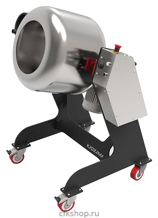 Дражировочный барабан Kadzama 27 кг предназначен для производства драже методом накатки различных субстанций на арахис и другие орехи на предприятиях общественного питания и торговли. Модель оснащена вращающимся барабаном и колесами со стопорами. Корпус и барабан выполнены из нержавеющей стали AISI 304.