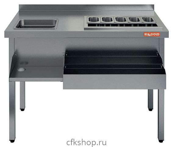 Барная станция HICOLD НКС-12/5БПК предназначена для комплектации модульных барных стоек на предприятиях общественного питания и торговли. Модель оснащена столешницей с задним бортом и устойчивыми опорами. Корпус и столешница выполнены из высококачественной нержавеющей стали AISI 430, столешница усилена ребрами жесткости. Изделие поставляется в сборе.