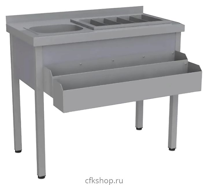 Коктейльная барная станция Restoinox БСНКМ-12/5-Б2К предназначена для организации барного места на предприятиях общественного питания и торговли.Модель оснащена мойкой, теплоизолированной ванной для льда, бортом, фартуком с 3-х сторон и регулируемыми по высоте пластиковыми опорами. Ножки выполнены из квадратной трубы 40х40 мм нержавеющей стали AISI 430, столешница, мойка и фартук - из нержавеющей стали AISI 430.