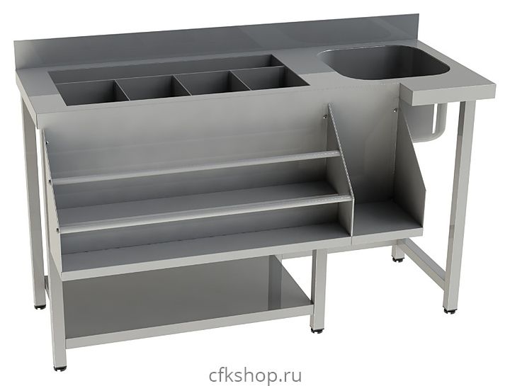 Коктейльная барная станция Restoinox БСНКМБ-15/6-БП2К предназначена для организации барного места на предприятиях общественного питания и торговли. Модель оснащена цельнотянутой мойкой, полкой, теплоизолированной ванной для льда, бортом и регулируемыми по высоте пластиковыми опорами. Ножки выполнены из квадратной трубы 40х40 мм нержавеющей стали AISI 430, столешница, мойка и полка - из нержавеющей стали AISI 430.