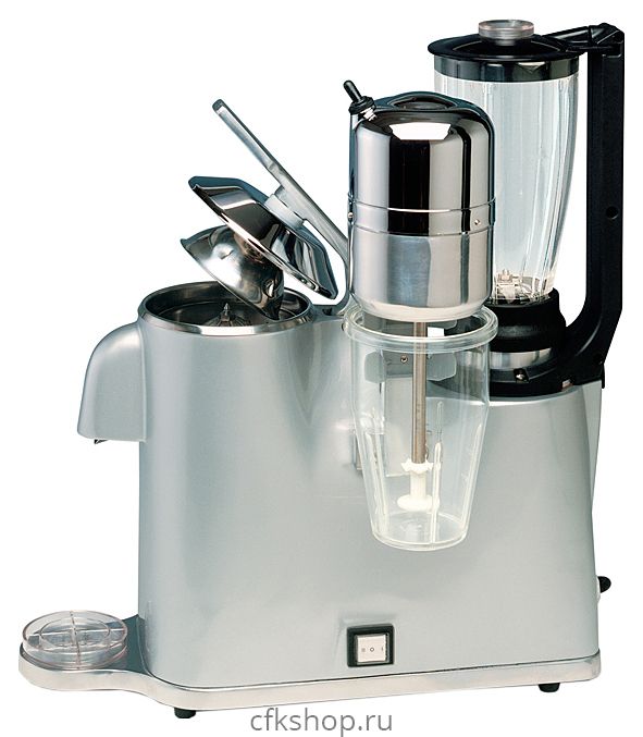 Барный комбайн Vema GR 2021 объединяет в себе функции блендера, соковыжималки и миксера для молочных коктейлей и используется на предприятиях общественного питания и торговли. Модель оснащена электромеханической системой управления и 2-х скоростным двигателем блендера. Корпус выполнен из окрашенного алюминия, конус соковыжималки и нож с 4 лезвиями блендера - из нержавеющей стали, стакан и крышка - из поликарбоната.