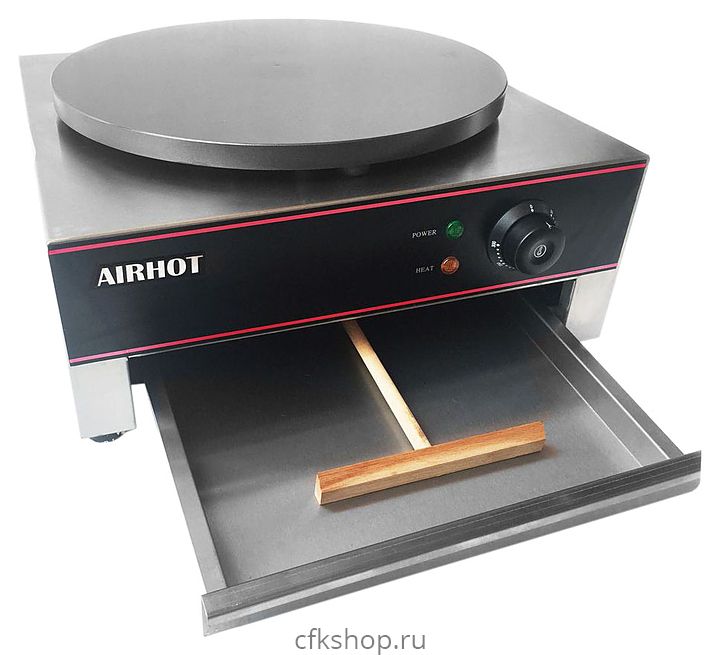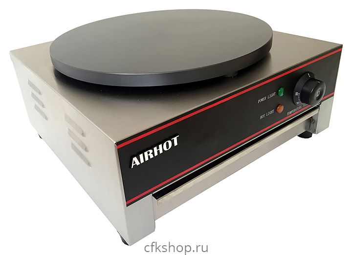 Блинница Airhot BE-1 используется на предприятиях общественного питания и торговли. Модель оснащена световым индикатором нагрева и термостатом, отключающим и включающим нагревательный элемент в процессе работы. Корпус выполнен из нержавеющей стали, жарочная поверхность - из чугуна с антипригарным покрытием.