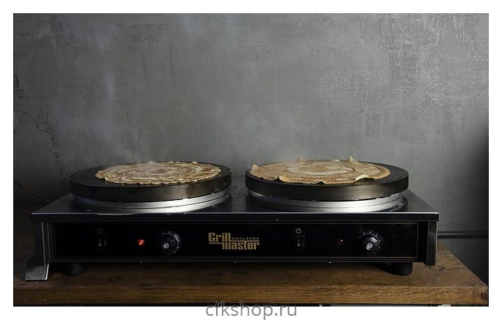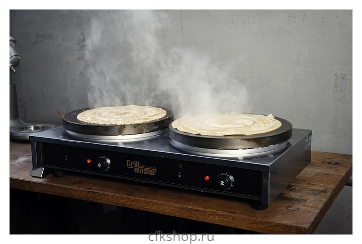 Блинница Grill Master Ф2БЭ предназначена для выпекания блинов на предприятих общественного питания и торговли. Модель оснащена с 3 нагревательными спиралями в каждом жарочном диске для идеального нагрева поверхности. Корпус выполнен из нержавеющей стали.