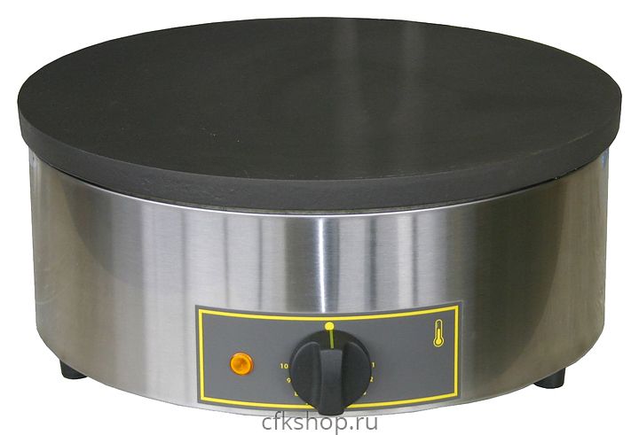 Блинница Roller Grill CFE 400 предназначена не только для жарки блинов, но также для приготовления гречневых лепешек, индийских темпура, индонезийских чапати и т.д. на предприятиях общественного питания и торговли. Модель оснащена терморегулятором. Рабочая поверхность изготовлена из чугуна с эмалевым покрытием, которое позволяет жарить с минимальным количеством жира. Корпус выполнен из нержавеющей стали.