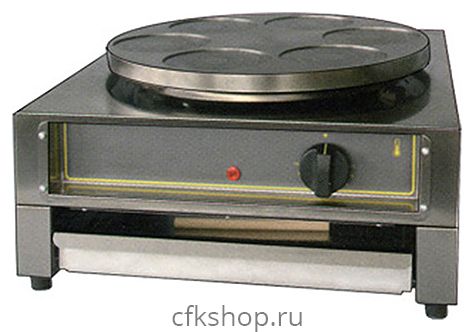Блинница Roller Grill CSE 406 используется на предприятиях общественного питания и торговли. Модель оснащена терморегулятором и поддоном для поддержания в теплом состоянии готовых блинов. Рабочая поверхность изготовлена из чугуна с эмалевым покрытием, которое позволяет жарить с минимальным количеством жира. Корпус выполнен из нержавеющей стали.