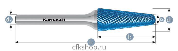 Борфреза конус с закругленной головкой, покрытие BLUE-TEC, арт.115082020