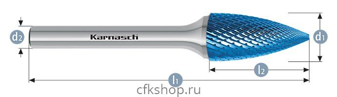 Борфреза парабола с заостренной головкой, покрытие BLUE-TEC, арт.115061110