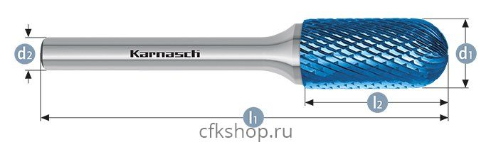 Борфреза цилиндр со сферическим концом, покрытие BLUE-TEC, арт.115022058