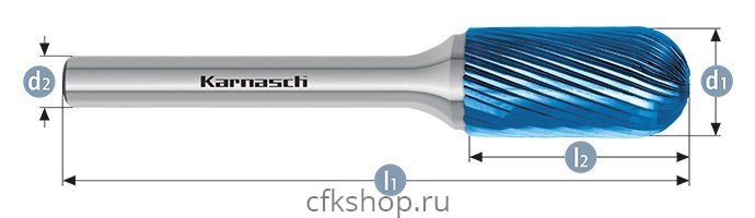 Борфреза цилиндр со сферическим концом, покрытие BLUE-TEC, арт.115023075