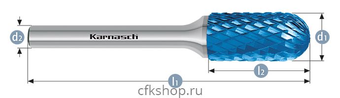 Борфреза цилиндр со сферическим концом, покрытие BLUE-TEC, арт.115024105