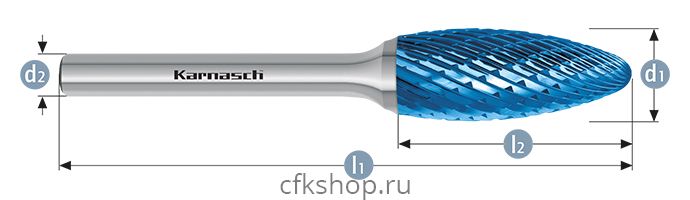 Борфреза язычок пламени, покрытие BLUE-TEC, арт.115071020