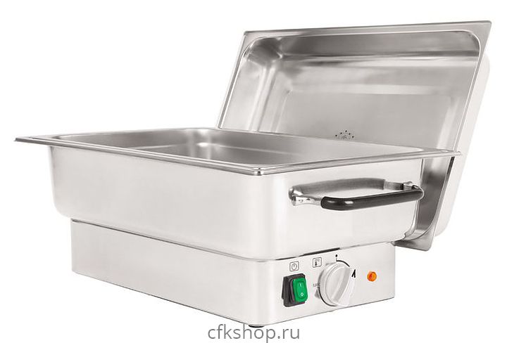 Чафинг-диш Hurakan HKN-CD14ELS предназначен для постоянного подогрева первых и вторых блюд и поддержания их оптимальной температуры на предприятиях общественного питания в сфере выездного обслуживания и для организации банкетов, фуршетов, шведских столов. Модель оснащена съемной крышкой и вмещает гастроемкости GN1/1-100. Корпус выполнен из нержавеющей стали.
