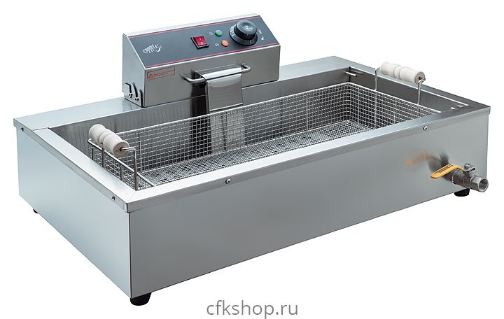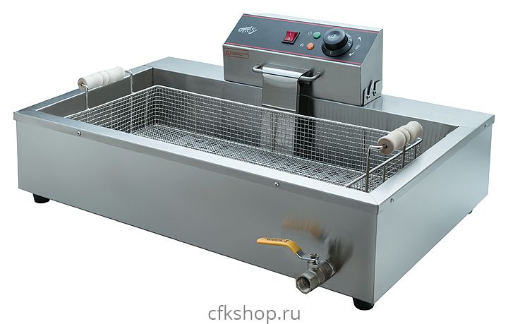Чебуречница Crazy Pan CP-BEF16 предназначена для приготовления чебуреков и других блюд на предприятиях общественного питания и торговли. Модель оснащена терморегулятором, боковым поддоном, объемной съемной корзиной и шипцами. Корпус выполнен из нержавеющей стали.