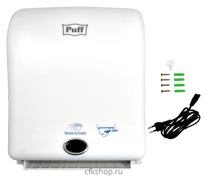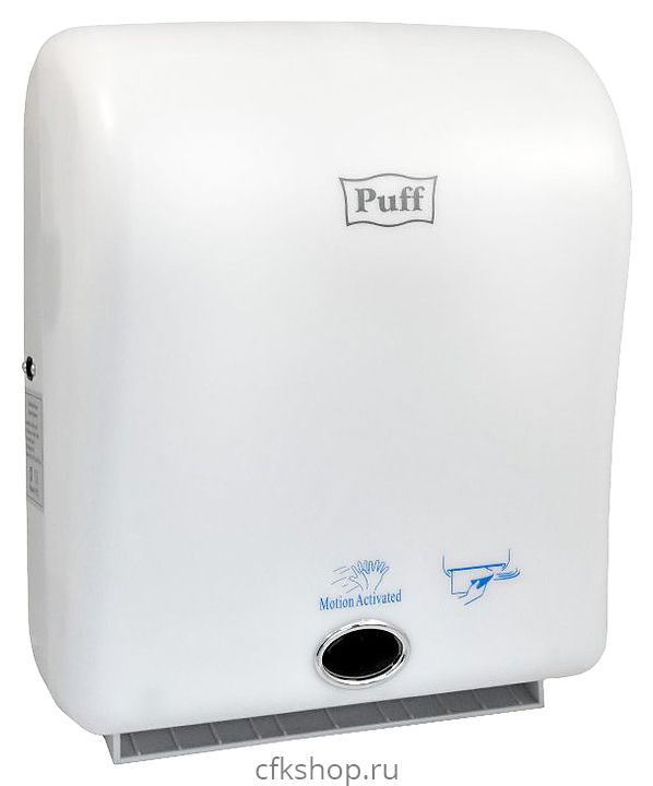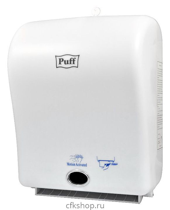 Автоматический диспенсер Puff 4110 предназначен для гигиеничного размещения и дозированной подачи бумажных полотенец в санитарных узлах офисов, гостиниц, предприятий общественного питания, медицинских учреждений и других мест средней проходимости. Корпус выполнен из ударопрочного белого АБС-пластика.