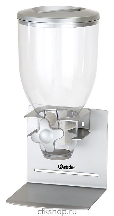 Диспенсер для мюсли Bartscher 500377 используется на предприятиях общественного питания и торговли для порционного дозирования мюслей, кукурузных хлопьев. Модель оснащена ручкой для удобства дозирования, подходит для тарелок и мисок высотой до 75 мм. Основание диспенсера выполнено из лакированного под серебро листового материала, емкость - из пластика.