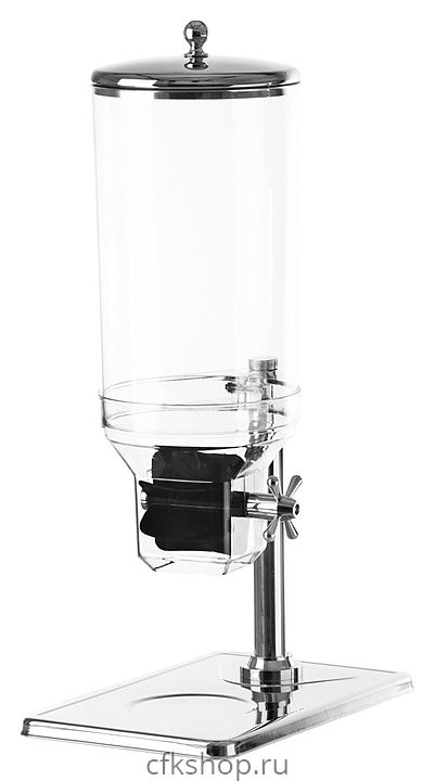 Диспенсер для мюсли MVQ AT90133 используется на предприятиях общественного питания и торговли для порционной раздачи мюсли, хлопьев и других сыпучих продуктов. Колба выполнена из пластика, крышка и подставка - из нержавеющей стали.