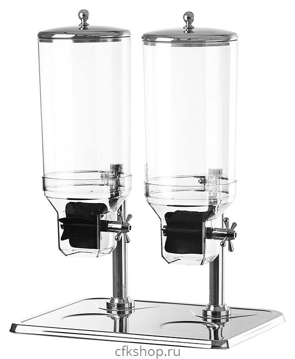 Диспенсер для мюсли MVQ AT90133-2 используется на предприятиях общественного питания и торговли для порционной раздачи мюсли, хлопьев и других сыпучих продуктов. Корпус и крышки выполнены из нержавеющей стали, емкости - из пластика.