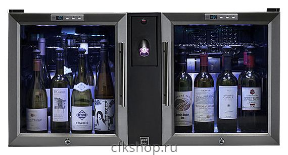 Вакуумный диспенсер для вина Bermar BC403S серии Pod Bar с 2 горизонтальными винными шкафами используется в барах и ресторанах для хранения и организации продажи розлива тихого вина по бокалам без потери их качества в течение 21 дня, демонстрации и охлаждения вина до необходимой температуры. Модель оснащена уникальной запатентованной технологией Le Verre de Vin, обеспечивающей идеально точный уровень вакуума, который остается стабильным, независимо от количества вина, оставшегося в бутылке. Корпус выполнен из нержавеющей стали с черной отделкой, дверцы и дверные ручки - из нержавеющей стали.