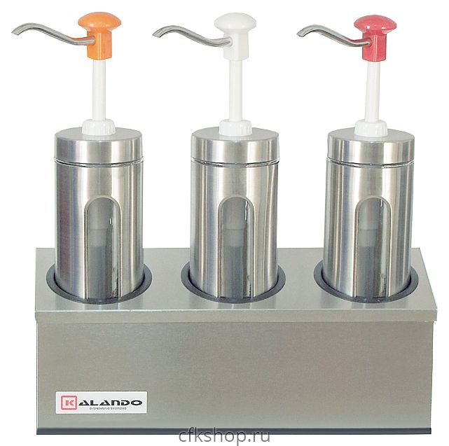 Помповый дозатор для соусов Kalando KD006 3 set используется на предприятиях общественного питания и торговли, в частных домах и квартирах для хранения и дозирования холодных и густых соусов. Основание выполнено из нержавеющей стали, емкости - из нержавеющей стали со стеклянными вставками для контроля количества соуса.