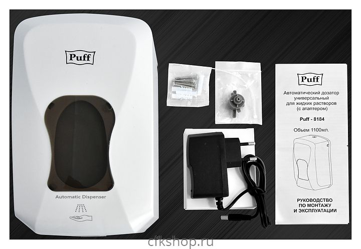 Автоматический дозатор Puff 8184 предназначен для размещения и дозированной подачи жидких и гелеобразных антисептических растворов и жидкого мыла в санитарных узлах офисов, гостиниц, предприятий общественного питания, медицинских учреждений и других мест средней проходимости. Модель оснащена окошком индикации наличия жидкости и насадкой для дозирования жидкого мыла. Корпус выполнен из белого ударопрочного АБС-пластика.