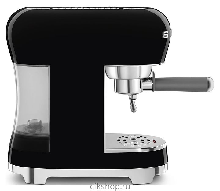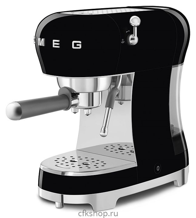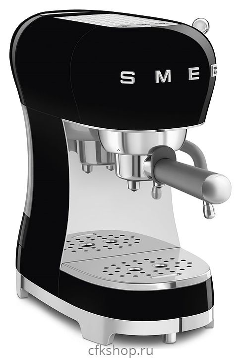 Эспрессо кофемашина SMEG ECF02BLEU предназначена для приготовления кофе эспрессо и напитков на его основе в домашних условиях. Модель оснащена кабелем питания с евровилкой (Shuko) и панелью управления с нажимными кнопками. Корпусы прибора и основания подставки для чашек выполнены из пластика с внешней глянцевой поверхностью черного цвета, основание прибора – из пластика с покрытием цвета полированный хром, бойлер, трубка подачи горячей воды / пара, подогреватель и поддон для чашек, фильтры, корпус холдера – из нержавеющей стали, резервуар для воды – из сополимера стирола и акрилонитрила (SAN), рукоятка холдера – из серого пластика, кнопки и накладные объемные литеры логотипа – из пластика с серебристым покрытием.
