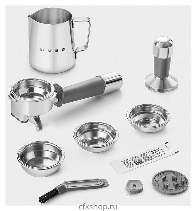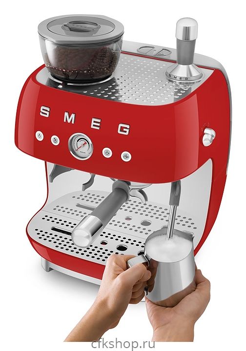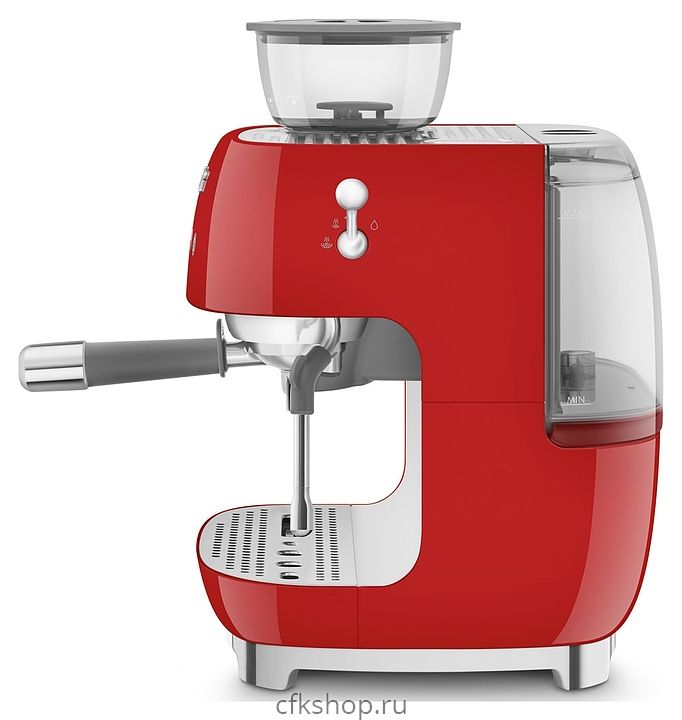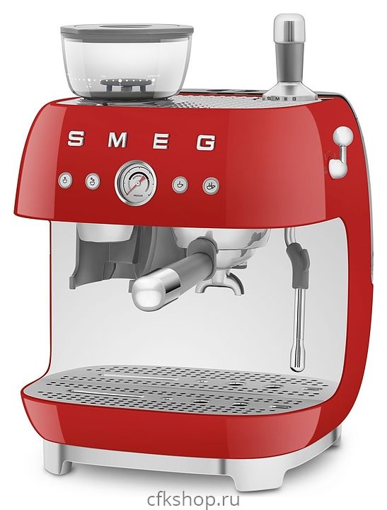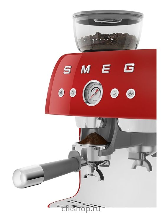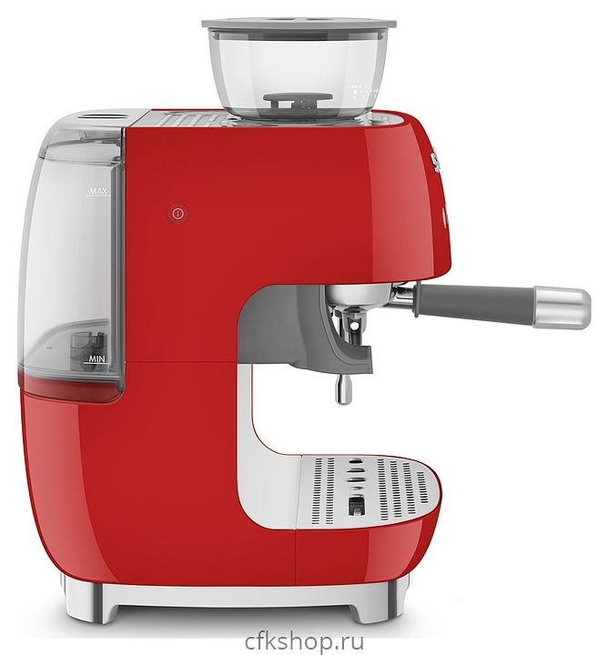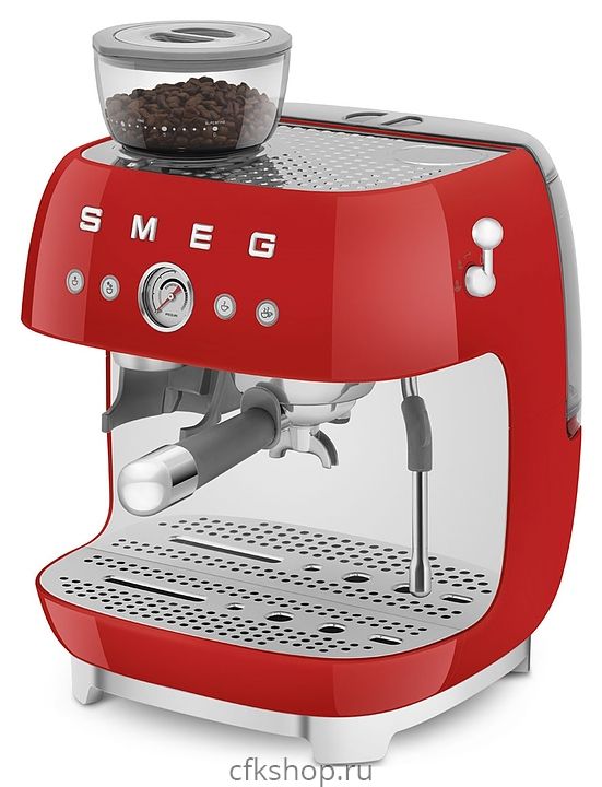 Эспрессо кофемашина SMEG EGF03RDEU предназначена для приготовления кофе эспрессо и напитков на его основе в домашних условиях. Модель оснащена кабелем питания с евровилкой (Shuko) и панелью управления с нажимными кнопками. Корпусы прибора и основания подставки для чашек выполнены из литого алюминия с внешним глянцевым покрытием красного цвета, бойлер, жернова, трубка подачи горячей воды / пара, подогреватель и поддон для чашек, питчер, фильтры, корпусы темпера и холдера – из нержавеющей стали, рычаг подачи пара – из сплава цинка, резервуар для воды с крышкой и контейнер для зерен – из сополимера стирола и акрилонитрила (SAN), крышка контейнера для зерен с интегрированной ручкой – из термопластичного элестомера (TPE), рукоятки холдера и темпера – из серого пластика.