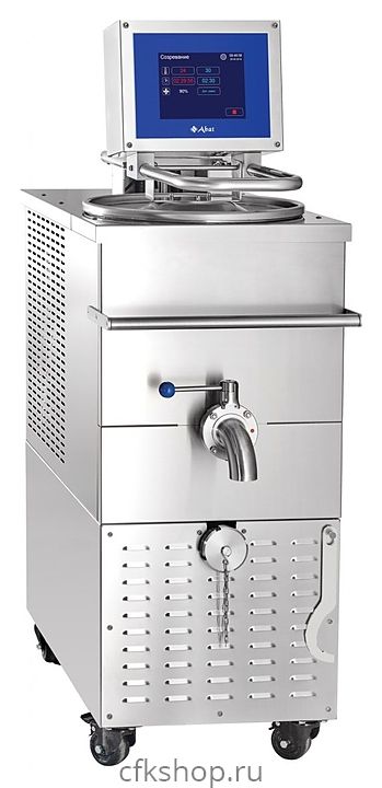 Ферментатор Abat ФТ-40П предназначен для приготовления и хранения различных жидких заквасок на предприятиях пищевой промышленности и общественного питания. Модель оснащена панелью управления с сенсорным экраном, позволяющим контролировать и настраивать конфигурацию циклов смешивания, ферментациии, консервации и колесами с ножным тормозом. Конструкция выполнена из высококачественной аустенитной нержавеющей стали AISI 304.