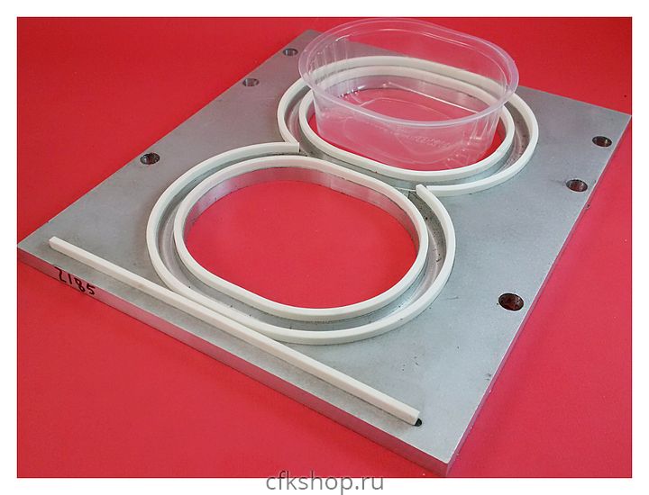 Форма VASSILII № 2185 с 2 отверстиями используется совместно с запайщиком лотков 200х273 мм на предприятиях общественного питания и торговли для запайки полипропиленовых контейнеров прямоугольной формы. Модель оснащена контурной обрезкой.