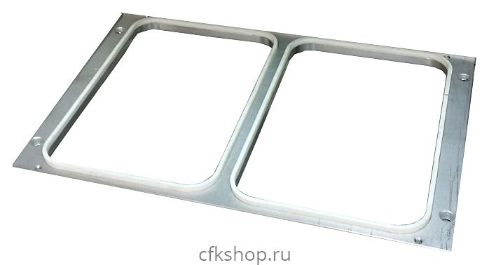 Форма VASSILII № 3118 с 2 отверстиями используется совместно с запайщиком лотков 360 на предприятиях общественного питания и торговли для запайки полипропиленовых контейнеров прямоугольной формы.