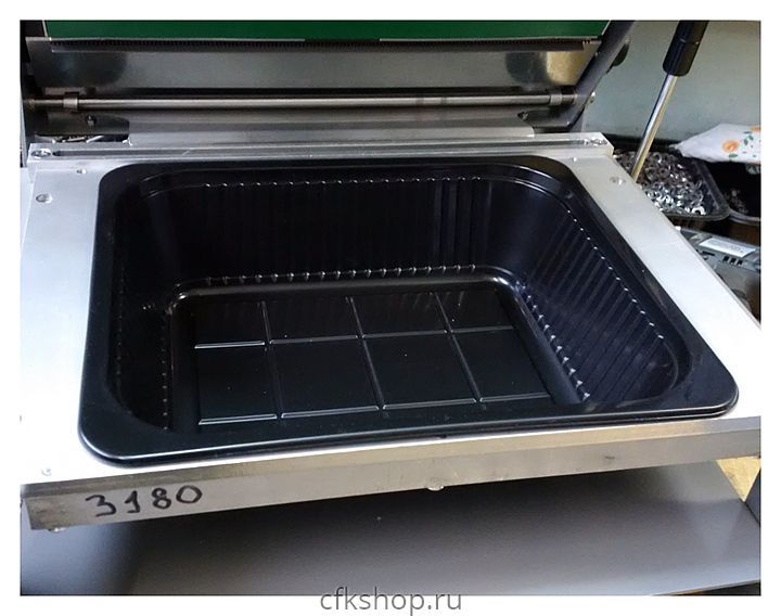 Форма VASSILII № 3180 используется совместно с запайщиком лотков 360 на предприятиях общественного питания и торговли для запайки полипропиленовых контейнеров прямоугольной формы.