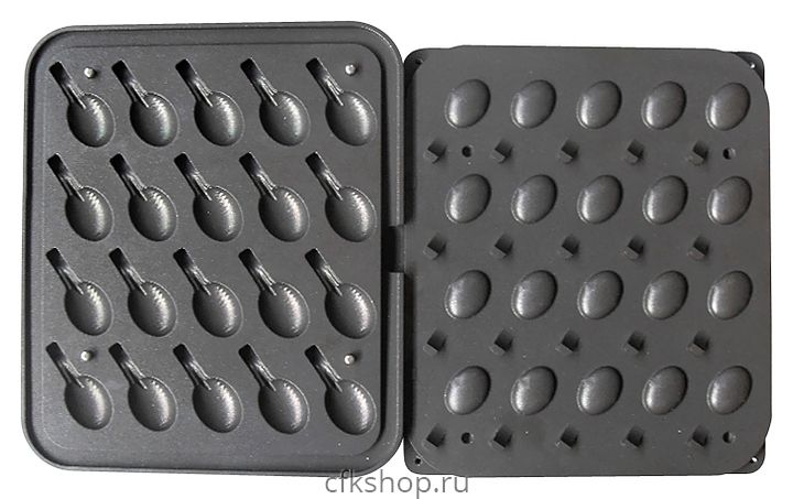 Форма Pavoni PIASTRA K используется совместно с тарталетницей COOKMATIC в пекарнях и кондитерских, на предприятиях пищевой промышленности и общественного питания. Модель состоит из 2 частей и позволяет выпекать тарталетки в форме ложечки. Изделие выполнено из чугуна с тефлоновым покрытием.