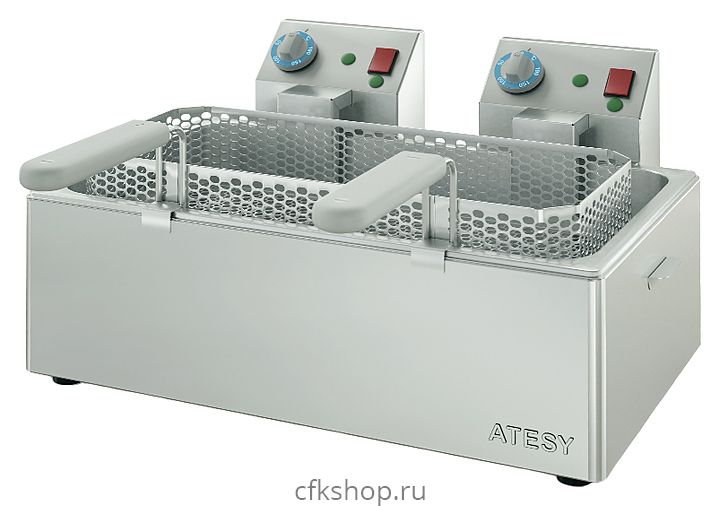 Фритюрница ATESY Панда-ЕВРО-1х1/1-Э используется на предприятиях общественного питания и торговли для приготовления различных видов продуктов в разогретом масле (фритюре). Модель оснащена 2 терморегуляторами и 4 индикаторными лампами. Изделие и сетка для загрузки продуктов полностью выполнены из пищевой нержавеющей стали, ручки сетки - из "холодного" пластика.