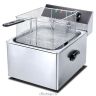 Фритюрница Hualian HEF-8L предназначена для приготовления различных блюд путем их обжарки в большом количестве масла на предприятиях пищевой промышленности, общественного питания и торговли. Модель оснащена механической панелью управления с терморегулятором и корзиной с ручкой и крючками для подвешивания на специальный выступ. Корпус и корзина выполнены из нержавеющей стали, ручки - из термостойкого пластика.