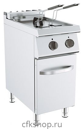 Электрическая фритюрница KUSINA G7F100E используется в составе тепловой линии 700 на предприятиях общественного питания и торговли для приготовления различных видов продуктов в разогретом масле (фритюре). Модель оснащена электромеханической панелью управления, предохранительным термостатом, закрытым стендом с распашной дверцей и регулируемыми по высоте ножками. Оборудование изготовлено из нержавеющей стали.