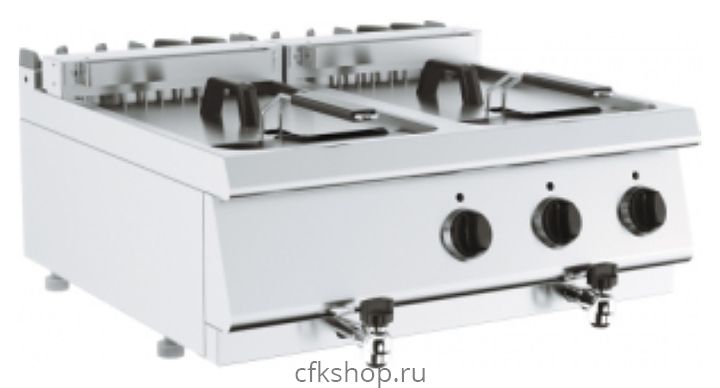 Электрическая фритюрница KUSINA G7F200E-S используется в составе тепловой линии 700S на предприятиях общественного питания и торговли для приготовления различных видов продуктов в разогретом масле (фритюре). Модель оснащена электромеханической панелью управления, предохранительным термостатом и 2 сливными кранами. Оборудование изготовлено из нержавеющей стали.