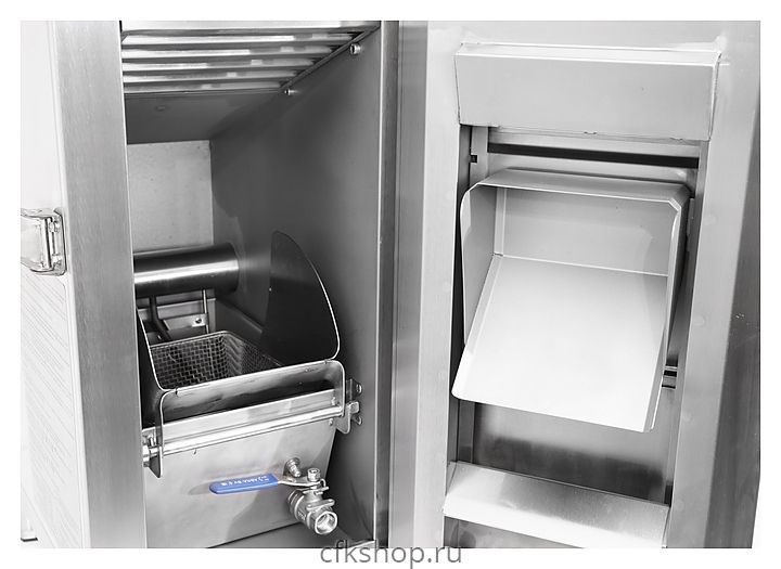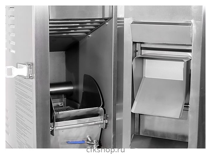 - Принцип действия: загрузить продукт в загрузочный лоток, запустить рабочий цикл. По окончании рабочего цикла продукт автоматически выгружается в раздаточную ёмкость.