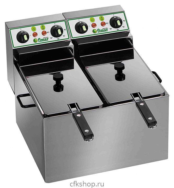Фритюрница FIMAR FR44 предназначена для приготовления широкого спектра блюд в большом объеме масла или жира на предприятиях общественного питания и торговли. Модель оснащена 2 регуляторами температуры, предохранительным термостатом с кнопкой возврата в исходное состояние и съемными верхним блоком и ТЭНами. Корпус, ванна и крышка выполнены из нержавеющей стали, выдвижные корзины - из хромированной проволоки, ручки корзин и крышек - из термоизолирующего пластика.