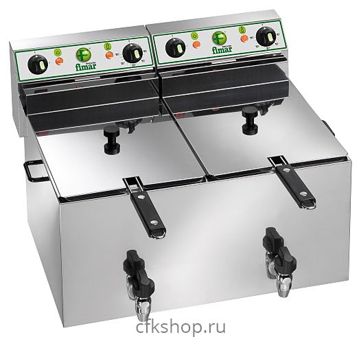 Фритюрница FIMAR FR88R предназначена для приготовления широкого спектра блюд в большом объеме масла или жира на предприятиях общественного питания и торговли. Модель оснащена 2 регуляторами температуры, предохранительным термостатом с кнопкой возврата в исходное состояние и съемными верхним блоком и ТЭНами. Корпус, ванна и крышка выполнены из нержавеющей стали, выдвижные корзины - из хромированной проволоки, ручки корзин и крышек - из термоизолирующего пластика.