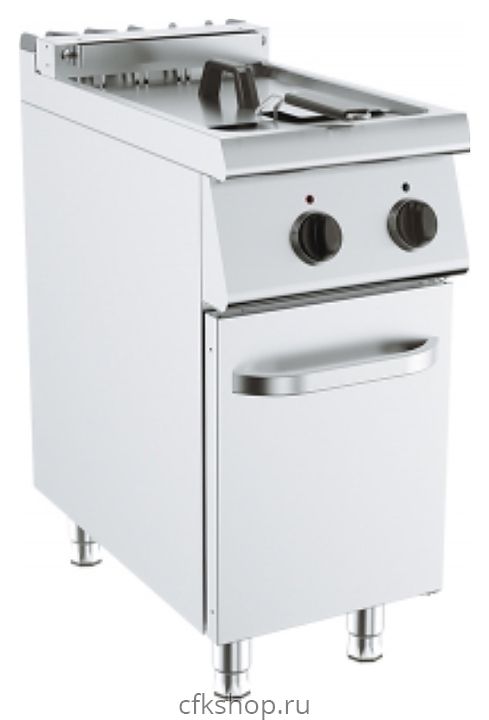 Электрическая фритюрница KUSINA G7F110E используется в составе тепловой линии 700 на предприятиях общественного питания и торговли для приготовления различных видов продуктов в разогретом масле (фритюре). Модель оснащена электромеханической панелью управления, предохранительным термостатом и распашной дверцей. Оборудование изготовлено из нержавеющей стали.